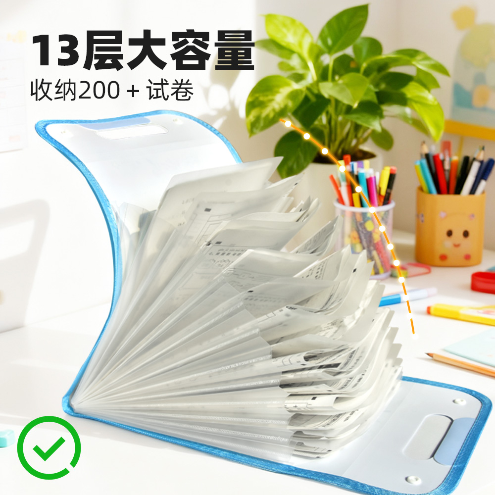 竖式风琴包试卷收纳袋初中小学生专用卷子收纳a4文件夹文件袋大容量手提多层插页资料夹高中科目分类整理神器
